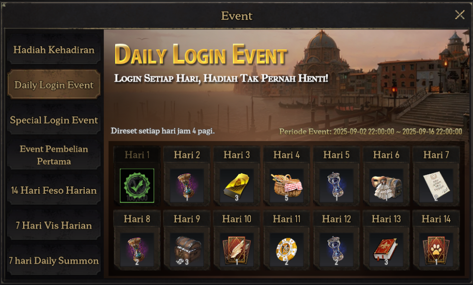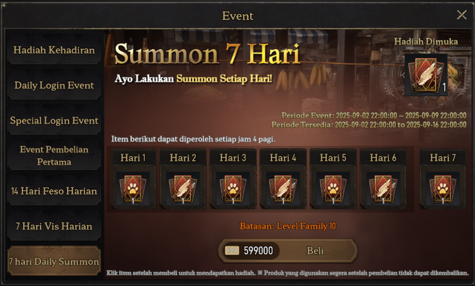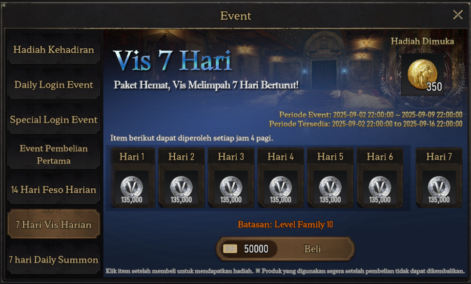 📦 Paket Harian Baru: Feso 14 Hari, Vis 7 Hari, Daily Summon 7 Hari