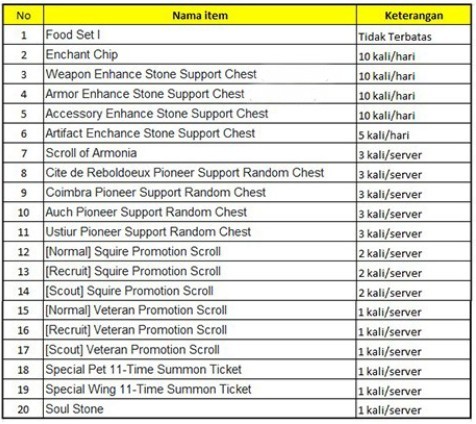 Paket yang berisikan: [Recruit] Page Promotion Scroll x2, [Recruit] Squire Promotion Scroll x2, [Recruit] Veteran Promotion Scroll x2