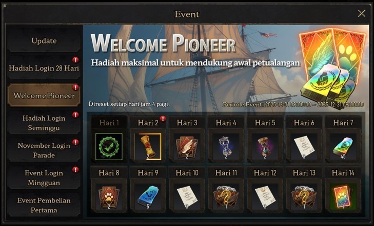 Selamat datang bagi para Family baru. Pada periode ini, setiap Family baru berhak memperoleh rangkaian item menarik selama 14 hari sebagai bentuk dukungan awal dalam petualangan kamu. Semoga pengalaman bermain kamu semakin menyenangkan dan penuh pencapaian. Ini khusus untuk Pionir yang bergabung dengan ID baru pada tanggal 03 desember - 17 Desember 2025.