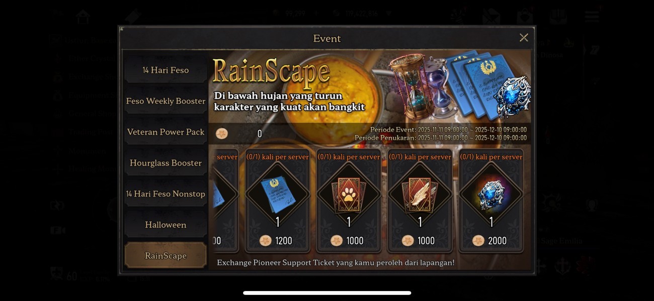 Di bawah hujan yang turun, karakter yang kuat akan bangkit. Inilah kesempatan pionir untuk membangkitkan kekuatan terbaik dari semua hero! Karena di RainScape Exchange Event kamu bisa meraih hadiah berikut ini: