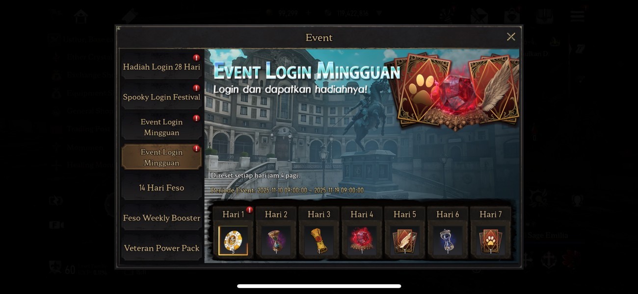 Selama 7 hari kamu akan ditemani dengan reward-reward menarik hanya dengan login! Berikut ini daftar hadiahnya: