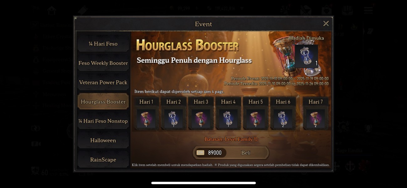 Untuk kamu yang ingin mempercepat progres dan memaksimalkan hasil grinding, Event spesial ini dirancang khusus untuk mendukung perolehan EXP dan item penting untuk heromu! Karena di Hourglass Booster, kamu akan mendapatkan item berikut ini selama 7 hari kedepan: