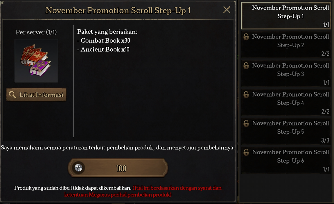 -[Normal] Veteran Promotion Scroll bisa dibeli sebanyak 1x setiap minggunya dengan harga 700 Feso