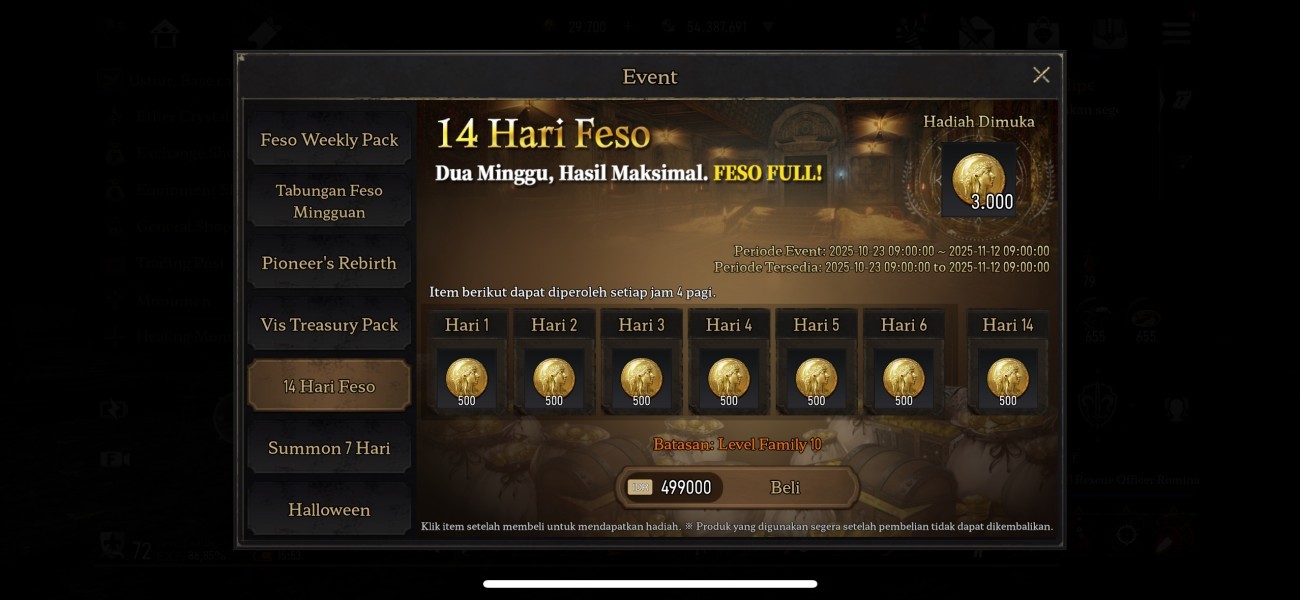 Manfaatkan event 14 Hari Feso untuk memperkuat progres tim kalian karena selama dua minggu penuh, kamu dapat mengumpulkan feso secara maksimal !.