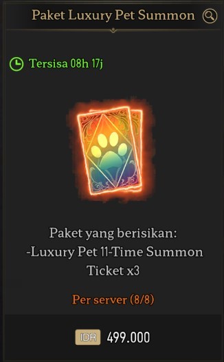 Dengan jumlah summon yang lebih banyak, peluang untuk memperoleh pet langka pun meningkat secara signifikan. Segera dapatkan paket luxury pet summon yang berisikan: