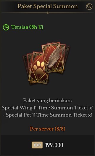 Wing atau Pet idamanmu kini bukan hanya mimpi ! Segera dapatkan paket special summon, summon dan dapatkan semuanya. Paket berikut berisi: