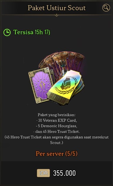 Benua baru Ustiur sangatlah kuat, jelajahi benua baru dengan set tim yang kuat! Paket ustiur scout akan sangat cocok untuk kalian mendapatkan hero baru yang kuat ataupun memperkuat kekuatan tim mu. Berikut isi paket ustiur scout: