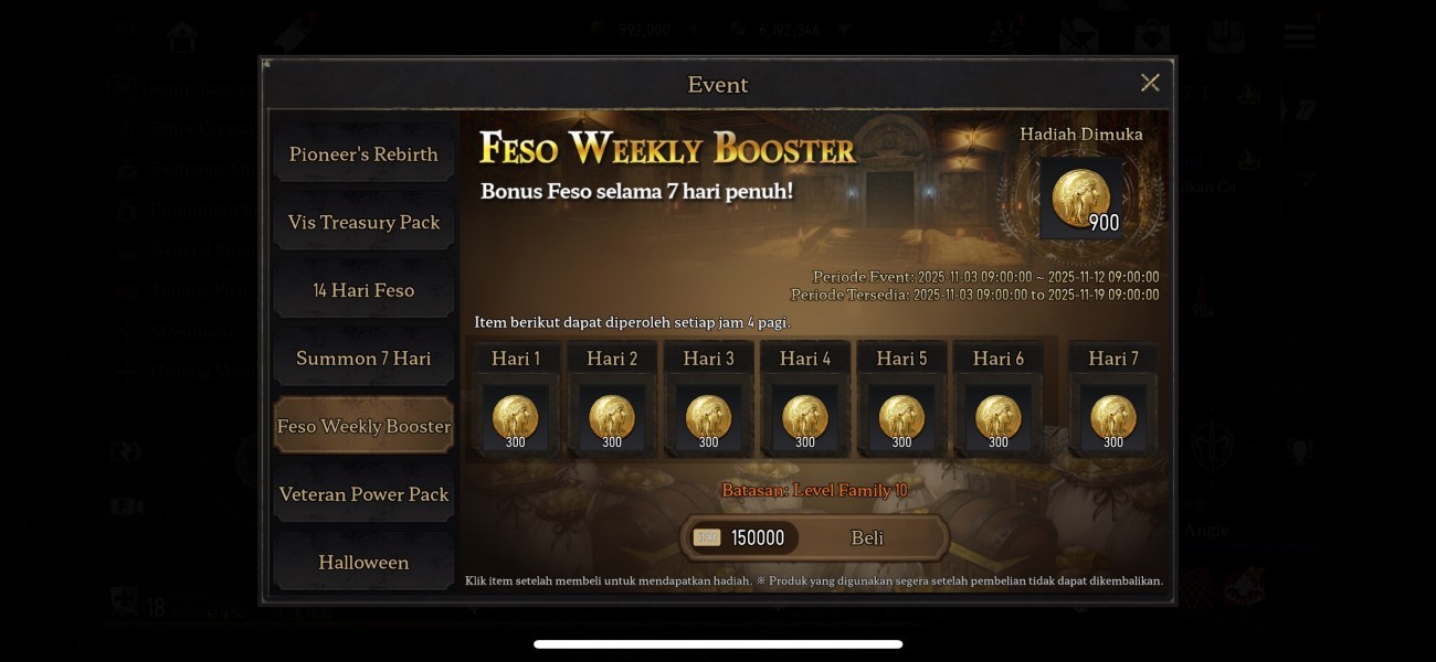 Event ini akan menghadiahkan Feso dengan detail sebagai berikut:
