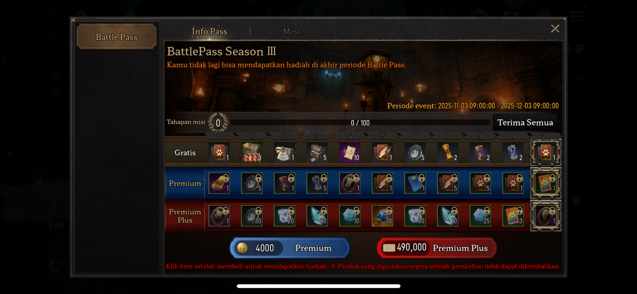 β¨ Battle Pass Premium Plus (IDR 490.000) - Daftar Hadiah: