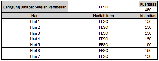 Kamu akan mendapatkan Feso yang sangat berlimpah dan dapatkan semua yang kamu inginkan secara instan hanya dengan Weekly Rush Feso II