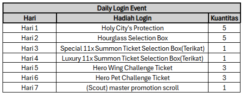 Tidak terasa sudah setengah tahun para pionir menjelajah di dunia Granado Espada M. Tambahkan semangat kamu lagi dengan Half Anniversary Login Event, kumpulan hadiah menarik untuk menemani perjalanan kamu yang panjang hanya dengan login sebanyak 7 hari!