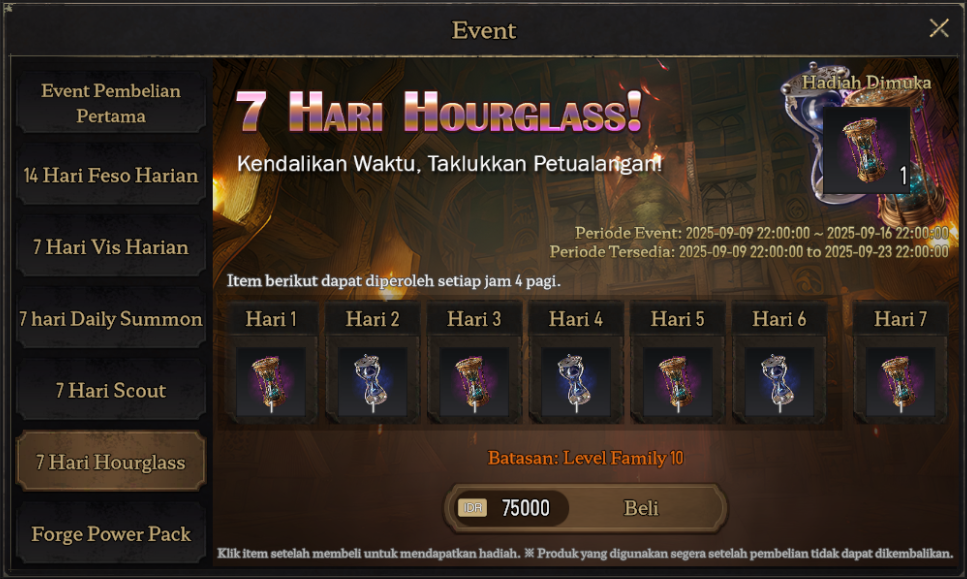 Kumpulkan Demonic Hourglass dan Rion Hourglass yang tersedia selama 1 minggu.
